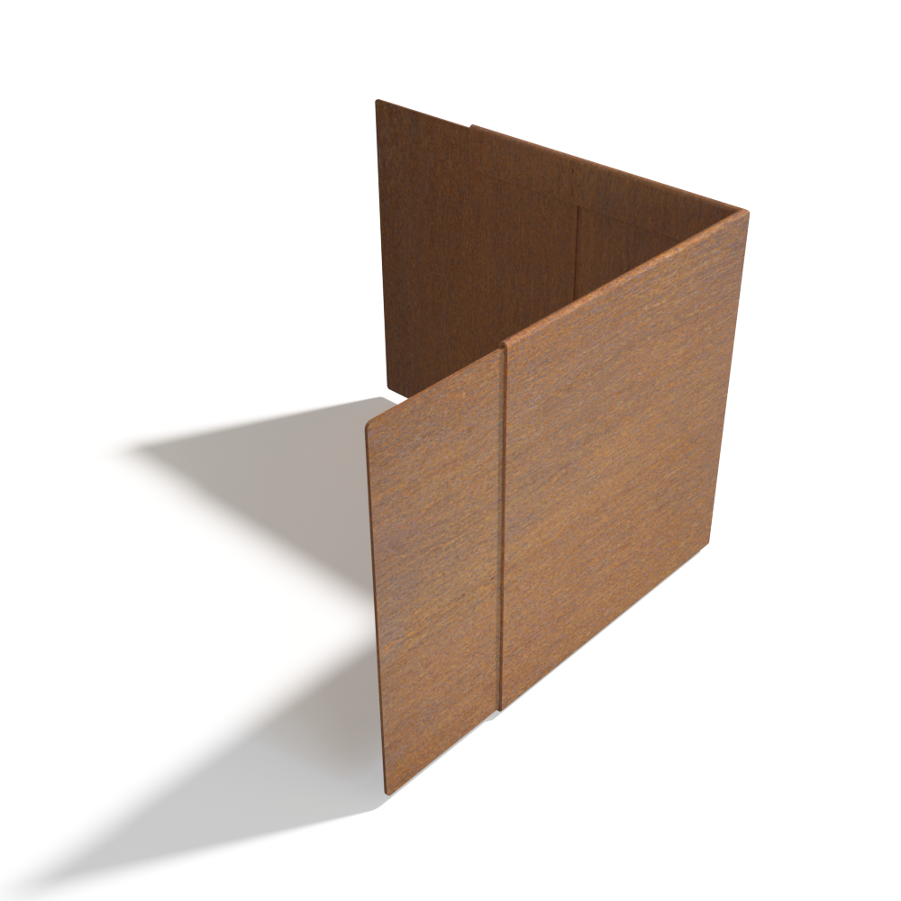 Angle extérieur à 90° pour bordures DELTA en acier COR-TEN®. Finition sortante droite, profil rigide à double bord replié. À choisir selon la hauteur des bordures.