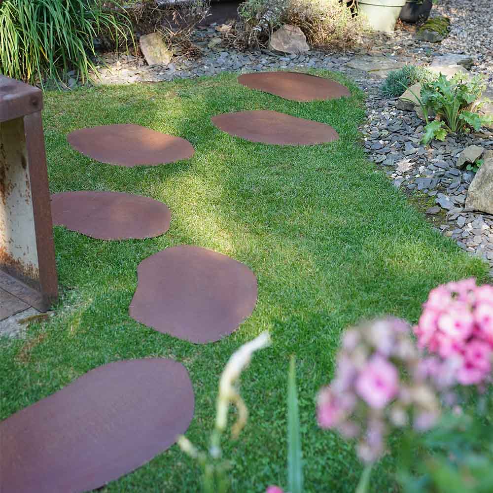 Composez un charmant chemin dans votre jardin grâce à ces pas japonais en acier Corten à l'aspect rouillé. Leur forme tout en rondeur évoque un galet ou une pierre, de quoi garder un côté naturel à votre pelouse. En plus, ces pas sont faciles à poser !